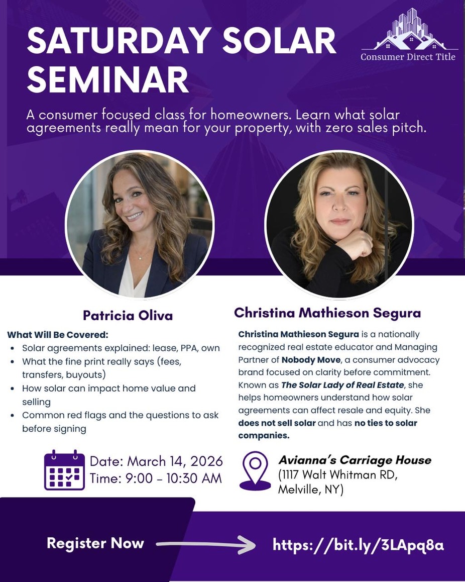 A consumer focused class for homeowners. Learn what solar agreements really mean for your property, with zero sales pitch. Register Now!