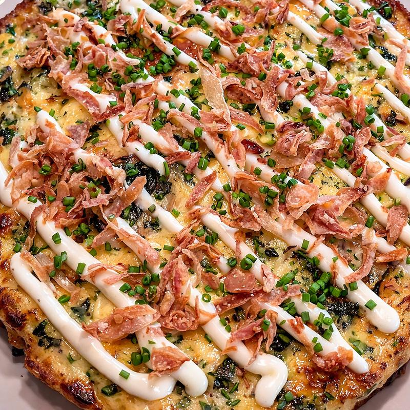 Sausage | pepper | rapini | sharp provolone | crème fraîche | crispy onion