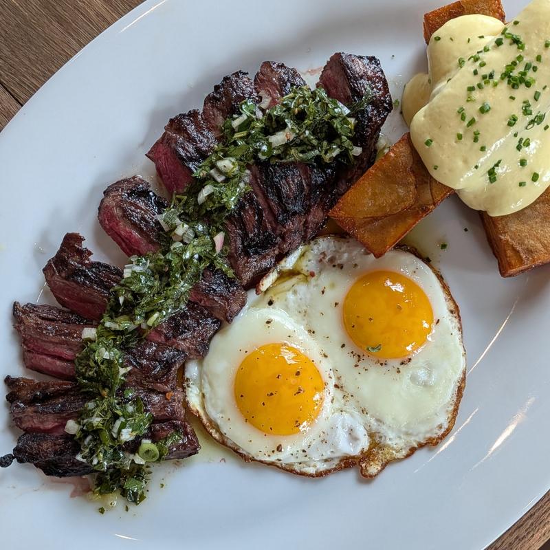 2-eggs any style | prime skirt steak chimichurri | potato pave | béarnaise